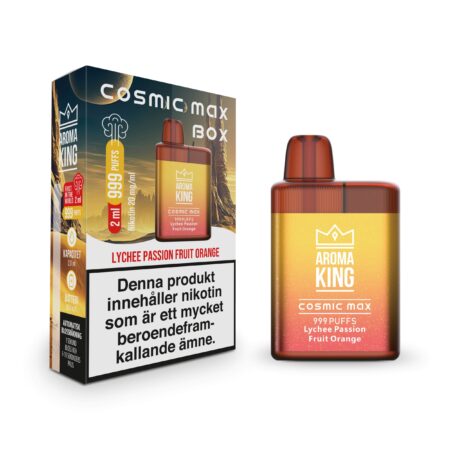 Aroma King Cosmic Max Box 20mg engångs vape är den nyaste versionen utav föregående favoriten Cosmic Max. Kommer i flera olika smaker.