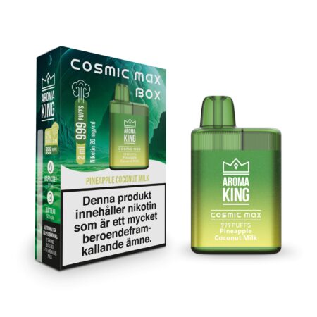 Aroma King Cosmic Max Box 20mg engångs vape är den nyaste versionen utav föregående favoriten Cosmic Max. Kommer i flera olika smaker.
