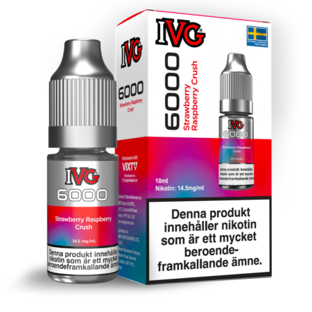 IVG 6000 är en serie e-vätskor med 14.5mg nikotinsalt. Smak av Jordgubbar och Hallon i en 10ml flaska med barnsäker kork.