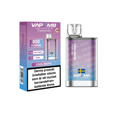 VapeM8 Crystal Box Druva är en engångsvape med smak av druvor med lätt kyla.