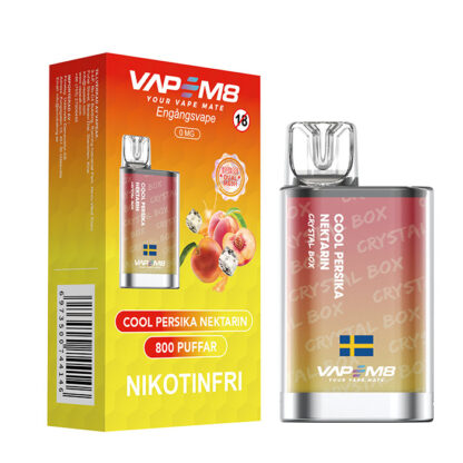 VapeM8 Crystal Box Cool Persika Nektarin är en nikotinfri engångsvape med smak av persika och nektarin med lätt kyla.