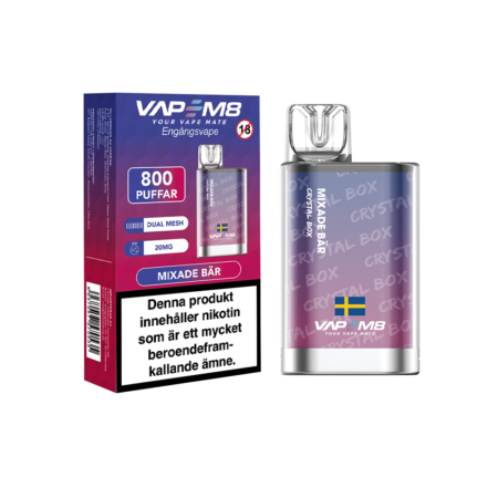 VapeM8 Crystal Box Mixade Bär är en engångsvape med smak av bär.