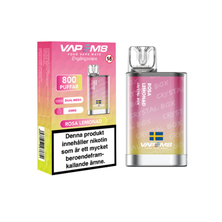 VapeM8 Crystal Box Rosa Lemonad är en engångsvape med smak av citron.