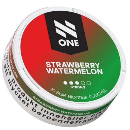 N One Slim Strawberry Watermelon är ett vitt snus, tobaksfritt snus med smak av jordgubb och vattenmelon. En dosa innehåller 20st prillor. Prillorna har slim-format och produkten har en stark nikotinstyrka, klassificerad som Strong (3 av 4). Nikotininnehållet är 9 mg per portion. Produkten är tillverkad i Sverige på uppdrag av N One Global AB.